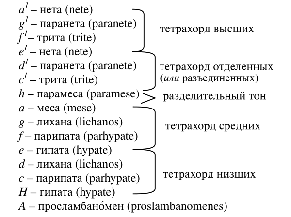 Теория музыки древней Греции была известна итальянцам благодаря работам музыкального теоретика Боэция († 524). Его идея о «гармонии сфер» (Musica mundana) пользовалась популярностью в Средние века и в эпоху Возрождения. Боэций связывал звуки небесных светил со струнами кифары (ступенями звукоряда), расположив их последовательно от месы (звук Неба) до просламбаномена (звук Луны). До нот в европейской музыке использовали знаки — невмы. Современная музыкальная нотация появилась благодаря трудам итальянского теоретика музыки первой половины XI века Гвидо д'Ареццо, который начал записывать ноты на четырёхлинейном нотном стане. Позже эта система дорабатывалась — добавилась пятая линейка, изменился внешний вид нот и ключей. В современном виде она существует с XVII века.