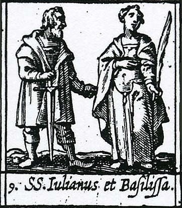 Святой мученик Иулиан родился в Антиное, что в Египте. По воле родителей он вступил в брак с Василиссой, благородной и богатой девицей. По обоюдному согласию в браке супруги остались девственниками. По кончине своих родителей они устроили две обители — мужскую и женскую. Приняв иночество, святые стали настоятельствовать в этих обителях.