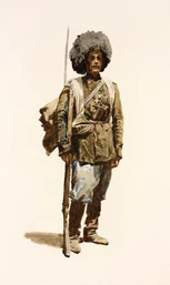 Слева унтер-офицер Кабардинского полка, справа артиллерист фейервейкер Отдельного кавказского корпуса. Рисунок Т. Горшельта, периода 1858—1861 годов.