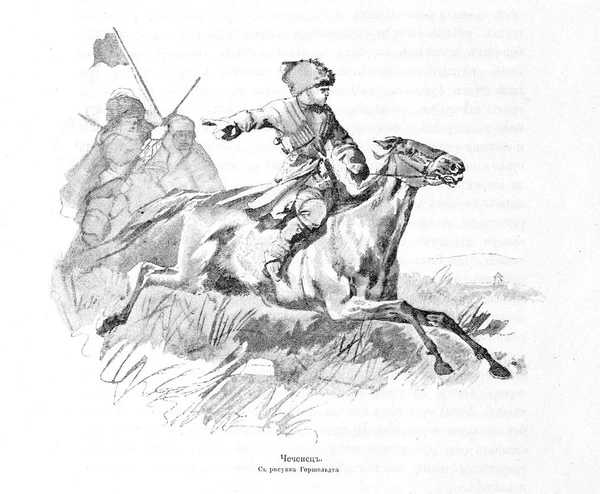 Каждый гик с обнаженными шашками встречал картечные выстрелы, «ура» и штыки. Сдвинув папахи на затылок бритых голов, или сняв и засунув их за пояс, засучив рукава, подобрав полы черкесок, чтобы ничто не мешало движениям, рассвирепевшие чеченцы, подобно дикому, хищному зверю, с ловкостью тигра, совершали отчаянные прыжки, кидаясь на цепь, или чуть-чуть удалившегося на шаг от колонны солдата, нанося привычной, ловкой рукой смертельные удары шашками и падая в свою очередь от штыка.