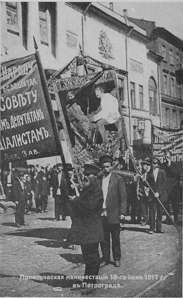 18 июня (1 июля) 1917 в Петрограде на Марсовом поле состоялась массовая демонстрация, организованная Съездом Советов. Однако, вопреки ожиданиям организаторов, планировавших провести общеполитическую демонстрацию доверия Временному правительству, акция, в которой участвовало около 500 тыс. чел., прошла под большевистскими лозунгами «Долой десять министров-капиталистов!», «Пора кончать войну!», «Вся власть Советам!», что свидетельствовало о разрыве между настроениями масс столицы и политикой Временного правительства и руководства Советов[16].