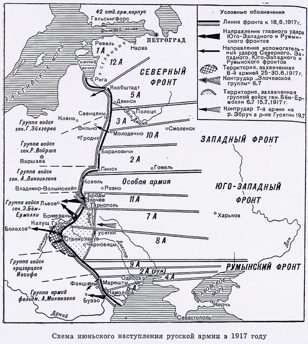 В телеграмме А. Ф. Керенского Временному правительству 18 июня 1917 года Керенский провозгласил: «Сегодня великое торжество революции, Русская революционная армия с огромным воодушевлением перешла в наступление»[10].