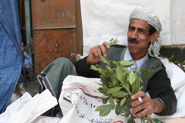 Пища йеменцев — зерновые продукты, плоды садов, молоко, мясо, на побережье — Рыба. Очень распространено жевание листьев ката — наркотического растения. До 80 % населения обоих полов регулярно жуёт кат. Кат — самая выгодная культура, занимающая 9 % всех сельхозугодий, 18 % населения работает в этой индустрии.