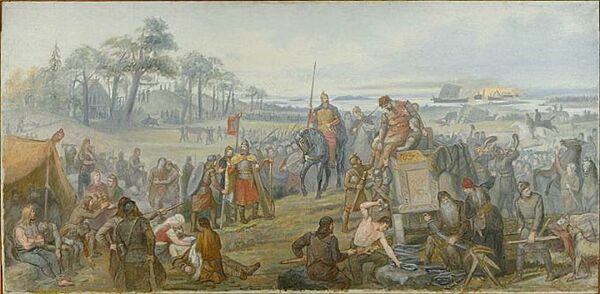 - Согласно 10-й книге Gesta Danorum, датский конунг Харальд I Синезубый захватил поселение Юлинум (Julinum) и отдал его шведскому принцу Стирбьёрну Сильному, снабдив его мощным флотом, с которым тот начал терроризировать окрестности.