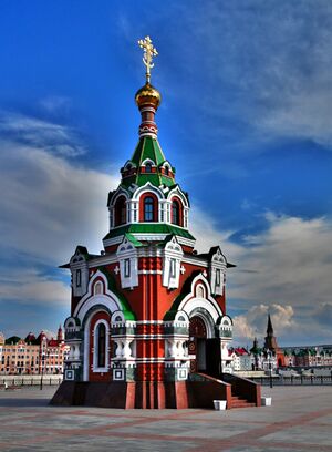 Конец 2000-х — начало 2010-х годов стали периодом активного храмового строительства. В 2008 году была завершена колокольня будущего Благовещенского собора[350], открыт памятник священномученику Леониду, епископу Марийскому[351], а также освящён главный престол восстановленной Троицкой церкви[352]. В 2009 году была воссоздана колокольня собора Вознесения Господня[353] и освящён придел в строящемся храме преподобного Серафима Саровского[354]. В 2010 году был заложен Благовещенский собор[355], а Воскресенский собор стал полностью действующим[356]. В 2011 году был освящён храм преподобного Серафима Саровского[354], а на площади Республики и Пресвятой Девы Марии установлен фонтан-памятник «Архангел Гавриил»[71].