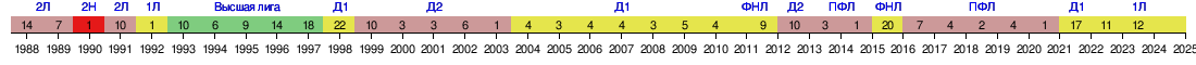 Список выступлений команды в первенстве СССР (1988—1991) и в чемпионате/первенстве России, а также в Кубке СССР/России.