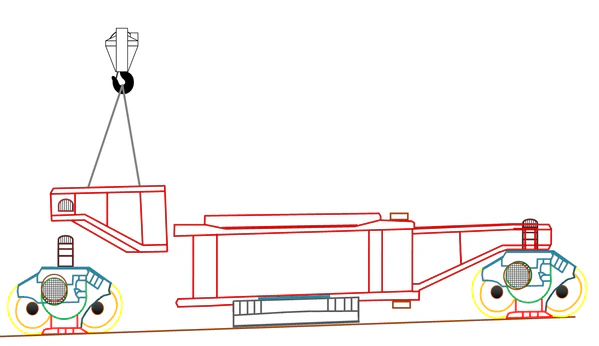 - Перевозка железнодорожным транспортом. При перевозке по железной дороге кран должен быть разобран на отдельные укрупнённые узлы, размещение и крепление которых узлов на железнодорожных платформах и полувагонах должно производиться в соотв. с чертежами и расчётами крепления, утверждёнными в установленном порядке. При этом руководствуются «Техническими условиями погрузки и крепления грузов» МПС[1].