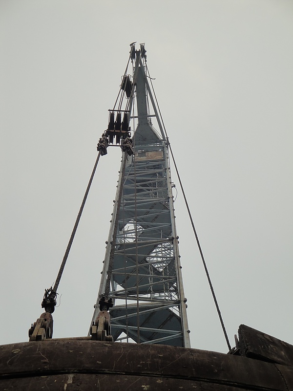 В головной секции установлены две серьги расчала стрелы, блоки для канатов, а внутри конструкции секции имеются специальные проушины для оси крепления прожектора. Проушины расположены на раскосах и закреплены на сварке[3].