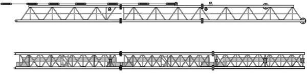 К фланцам верхней секции крепится оголовок. В местах крепления основной стрелы и противовесной консоли имеются проушины, а также имеются специальные «монтажные» — для удобства монтажа оголовка, которые расположены на поясах верхней секции[2].