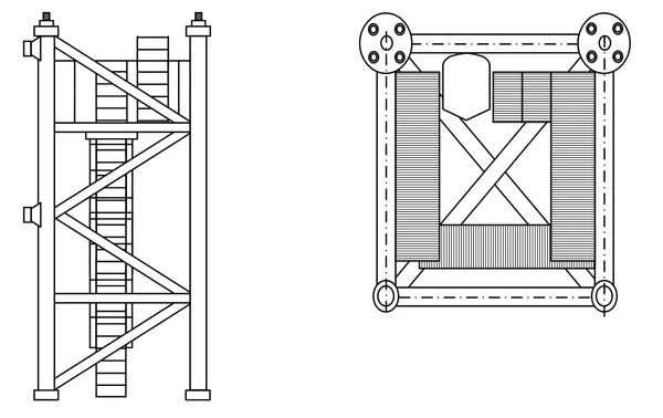 Рамка, устанавливаемая в стыке двух секций предназначена для присоединения к ней специальных связей, которые крепят кран к возводимому зданию. Она состоит из четырёх фланцев, соединённых между собой трубами, диагоналями и пластинами. Для присоединения рамки к связям служат два отверстия диаметром 80 мм[2].