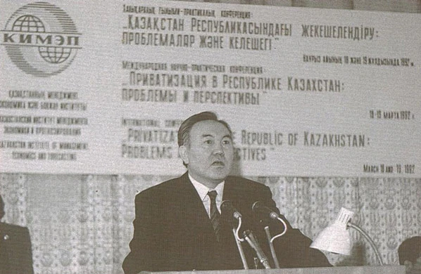 28 августа 2003 года «Государственное учреждение „Казахстанский институт менеджмента, экономики и прогнозирования при Президенте Республики Казахстан (КИМЭП)“» указом президента Назарбаева было реорганизовано в некомерческое акционерное общество[3].
