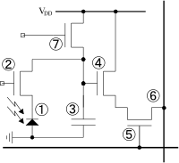 - Фотодиод ячейки матрицы имеет сравнительно малый размер, величина же получаемого выходного напряжения зависит не только от параметров самого фотодиода, но и от свойств каждого элемента пикселя. Таким образом, у каждого пикселя матрицы оказывается своя собственная характеристическая кривая, и возникает проблема разброса светочувствительности и коэффициента контраста пикселей матрицы. В результате этого первые произведённые КМОП-матрицы имели сравнительно низкое разрешение и высокий уровень так называемого «структурного шума» (англ. pattern noise).
