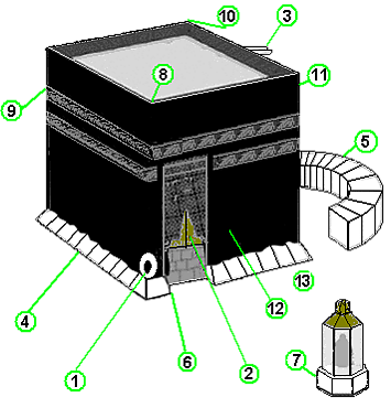 Цоколь (араб. الشاذروان), на котором стоят стены Каабы, добавлен в 1627 году для защиты фундамента от грунтовых вод.