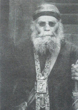 Передо мной на великолепном белом коне сидел небольшого роста старик. Одет он был в белый китель, синие с малиновыми лампасами шаровары и большие сапоги. Голова его была не покрыта, и его длинные, цвета пепла, седые волосы были перевязаны чёрной лентой, и только концы их слегка трепал свежий весенний ветер. На груди у него, на массивной цепи, висели серебряный восьмиконечный крест и большая икона. Его чуть сутуловатая фигура говорила о том, что он сильно устал, и, несмотря на то, что он ещё бодро сидел в седле, весь вид его не напоминал воина. Его морщинистое лицо, окаймлённое серой седой бородой, на первый взгляд, не представляло ничего особенного, и только серые глаза были интересны. В них светилась бесконечная доброта, любовь и наивность, но в них не было энергии и решительности вождя.[6]