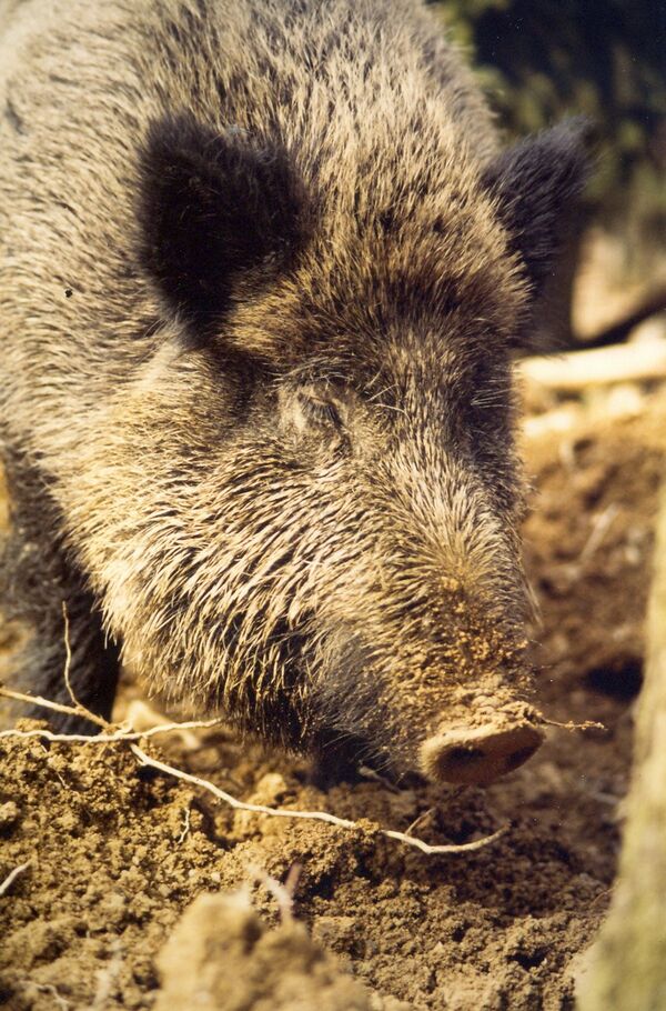 Кабан — всеядное парнокопытное нежвачное млекопитающее из рода кабанов (Sus). Отличается от домашней свиньи, которая несомненно произошла от кабана (и других близких видов), обладает более коротким и плотным телом, более толстыми и высокими ногами; кроме того, голова у кабана длиннее и тоньше, уши длиннее, острее и притом стоячие. Постоянно растущие верхние и нижние клыки, торчащие изо рта вверх, у самца гораздо более развиты, чем у самки.