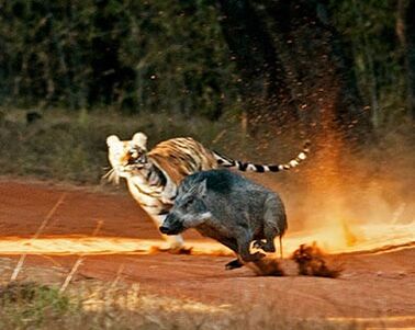 Охота на кабанов сопряжена со значительной опасностью, так как они нередко бросаются на охотников, причём самцы-«секачи» наносят рваные раны своими мощными клыками; самки же, у которых клыки менее развиты, чем у самцов, сбивают неосторожных охотников с ног и бьют их передними копытами. Поэтому при загонной охоте на кабана иногда устраивают для охотников невысокие платформы, с которых кабаны, вследствие неподвижности своей шеи, не могут сбросить охотника. Когда кабан бросается, лучше всего отскочить перед самим животным в сторону, так как кабан, пронёсшись мимо, редко возвращается обратно для нового нападения. Опаснее всего старые кабаны, держащиеся в одиночку, а потому и называемые одинцами. У старых секачей перед гоном образуется на спине и по бокам что-то вроде брони из подкожной хрящевидной ткани[26]. Во время гона эта броня (калкан) предохраняет бока животного от ударов клыков другого самца во время драки за самку. Кроме загона, на кабанов охотятся с притравленными на них собаками (гончими и другими породами с примесью гончей крови). Ночью кабана подкарауливают на засеянных полях, куда они выходят кормиться. В азиатской части бывшего СССР, где кабаны водятся не только в лесах, но и в камышах, на них охотятся верхом, преследуя выпугнутых из камышей животных и стреляя их на всём скаку. Гонят дикого кабана окриками «Ач-ач!» Также распространена охота с вышек (лабазов), где животных поджидают, когда они придут на подкормочную площадку.