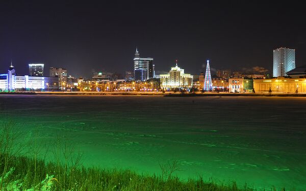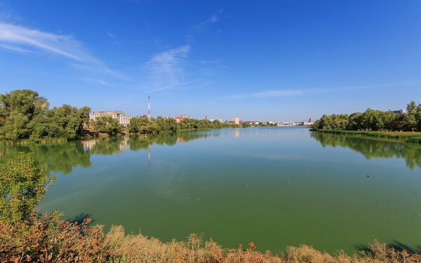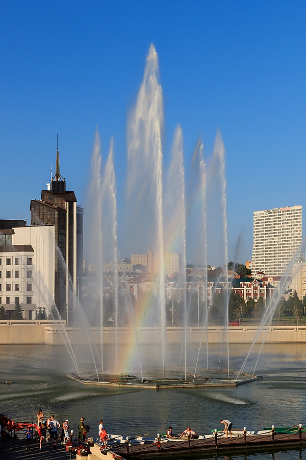 На водной глади северной торцевой оконечности Нижнего (Ближнего) Кабана в центре города перед площадью театра Камала устроен подсвечиваемый вечером высотный широкий водный фонтан.