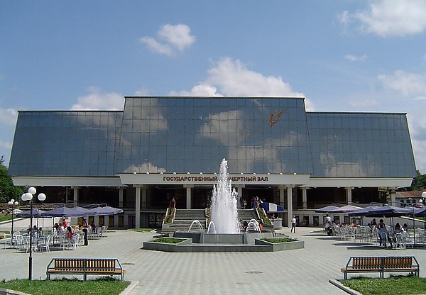 Государственный концертный зал в Нальчике открыли в 2001 году. Здание построено по совместному проекту заслуженных архитекторов КБР Александра Павловича Кирьязева, Владислава Хасановича Асанова и Юрия Степановича Логоватовского. Авторы использовали в своём проекте светопрозрачные конструкции, главный фасад здания остеклён эмалитом. Концертный зал оснащён современным музыкально-техническим оборудованием. На площадке перед зданием размещён красивый фонтан, имеющий форму восьмигранника[2].