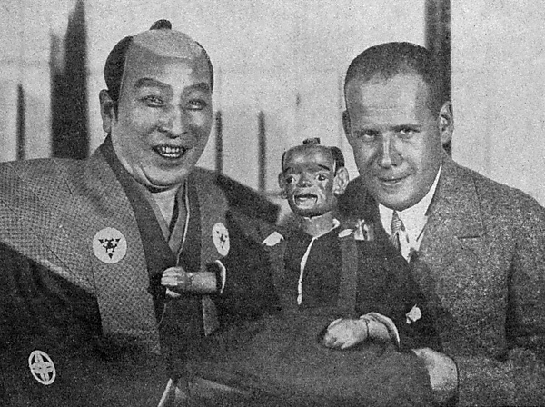 Первые зарубежные гастроли кабуки прошли в 1928 году в Советском Союзе[39][22]. Труппу, включившую 19 актёров, 8 музыкантов и 8 человек вспомогательного персонала, возглавил Итикава Садандзи II[39]. Коллектив привёз с собой три программы[комм 2]; представления прошли в Москве и Ленинграде[40] и имели у советских зрителей большой успех[39]. Участники гастролей имели возможность познакомиться со спектаклями московских театров и общались с советскими театральными деятелями[41][42].