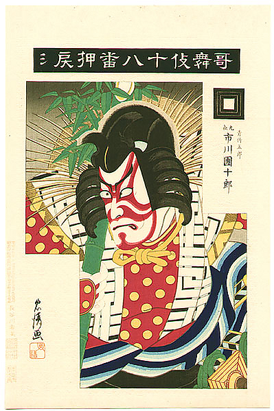 Специфическим методом гримирования в театре кабуки является кумадори (яп. 隈取, букв. «нанесение полос на лицо»[33]). По одной из версий, кумадори был создан под влиянием китайского театра, поскольку он похож на образцы грима ляньпу[34]. Кумадори особенно широкое распространение получил в театральном мире периода Эдо[35].