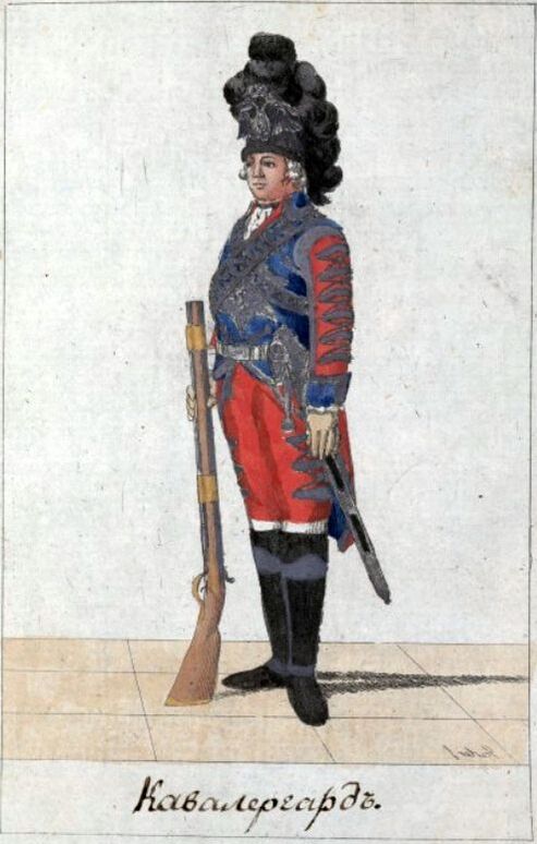 При императрице Елизавете Петровне Кавалергардии вовсе не было, но при коронации и других придворных торжествах чины лейб-кампании надевали петровскую кавалергардскую форму.