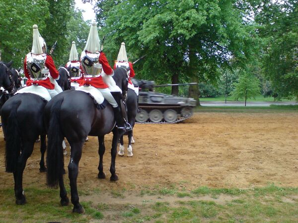 Дворцовая кавалерия Британской армии выполняет две функции — участие в церемониалах на конях и участие в боевых действиях как бронетанковый разведывательный полк.