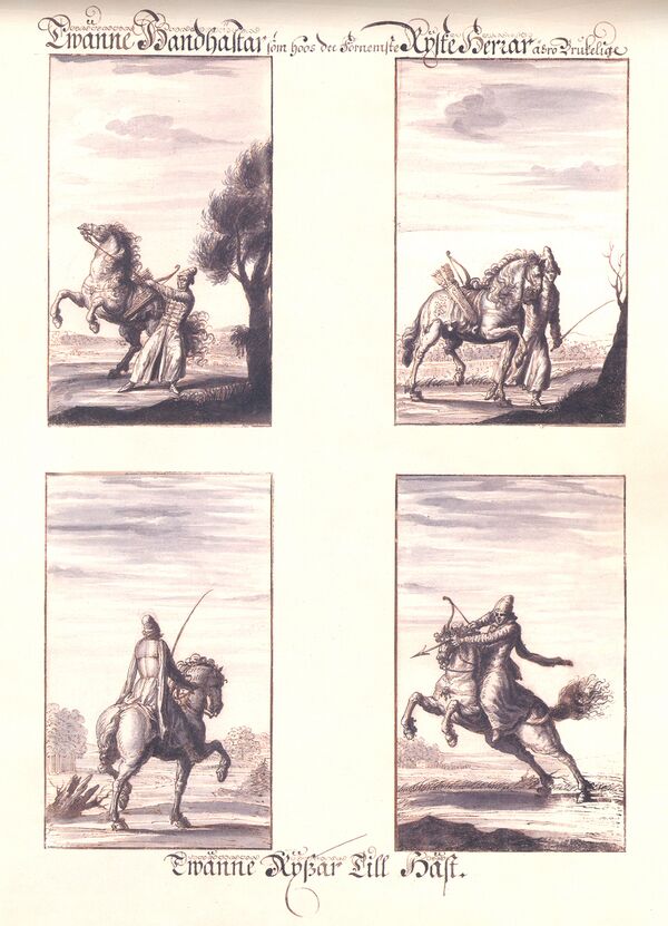 В 1630 году царь Михаил Фёдорович сформировал из иностранных наёмников «немецкие полки», в том числе конные рейтарские и драгунские. В войске Алексея Михайловича среди 40 полков были рейтарские, драгунские, казачьи полки и гусарские «копейные шквадроны» (эскадроны с копьями)[6].