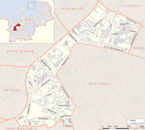 Расположен в западной части Таллина. Граничит с микрорайонами Вескиметса, Лиллекюла, Сяэзе, Мустамяэ, Вана-Мустамяэ, Астангу и Вяйке-Ыйсмяэ. Площадь — 2,81 км2[1].