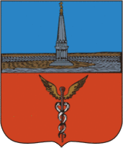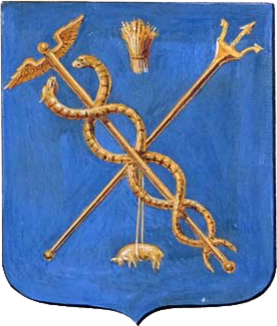 В геральдике кадуцей часто помещают в качестве фигуры на гербах различных дворянских родов, а также таких городов как Балта, Бердичев, Енисейск, Зеленодольск, Ирбит, Любар, Нежин, Новая Водолага, Новозыбков, Рава-Русская, Славянск, Таганрог, Тальное, Тельшев, Тифлис, Улан-Удэ, Феодосия, Харьков и др.[14][16]