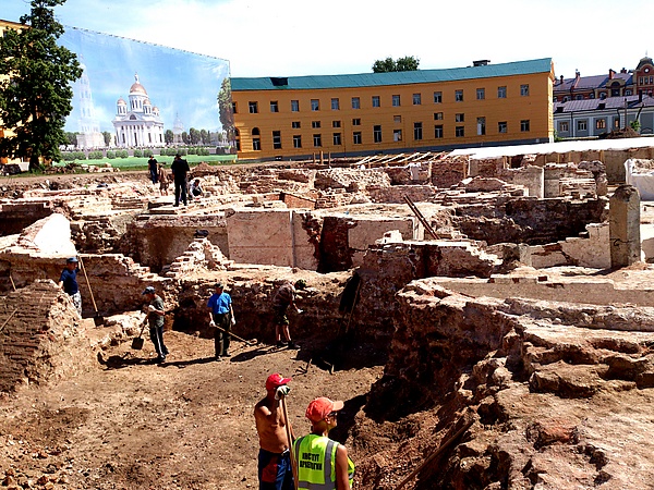 27 апреля 2016 года на пустыре, где раньше находился собор Казанской иконы Божией Матери, начались археологические раскопки[8]. На время работ стоявшую здесь часовню (божницу), обозначавшую место обретения иконы, перенесли в сквер к востоку от Крестовоздвиженского собора (где она и находится по сей день), впоследствии переоборудовав её под звонницу.