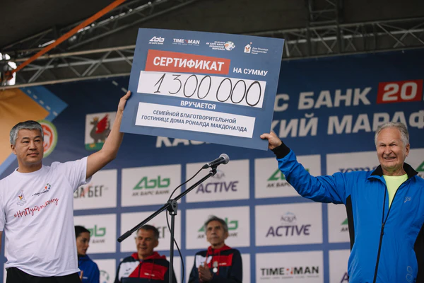 - Также с 2017 года Казанский марафон тесно взаимодействует с Домом Роналда Макдоналда[18]. В рамках Казанского марафона 2018 была собрана команда Дома Роналда Макдоналда, деньги за организационный взнос которой были переданы благотворительной организации. Также часть собранных средств (7 % от всех стартовых) была перечислена Дому[19].