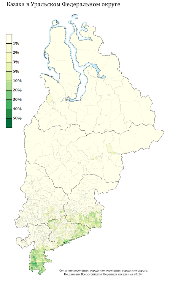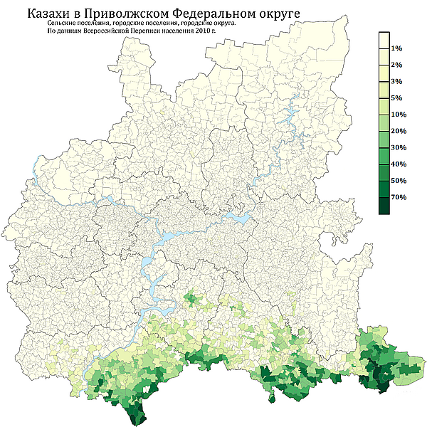 - Карта доли казахов до уровня сельского поселения ПФО