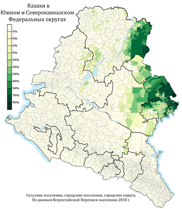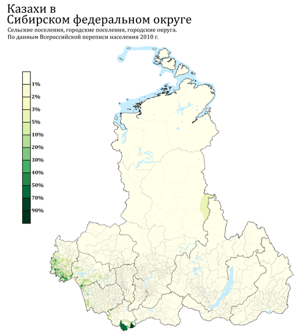 | Доля казахов по районам и городам России | ||
