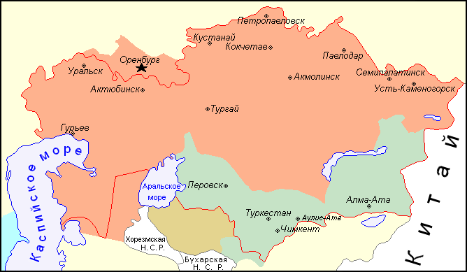 В феврале 1925 года Оренбургская губерния и город Оренбург (столица Киргизского края с 10 июля 1919 года, столица Казакской АССР с 26 августа 1920 года до февраля 1925 года) были изъяты из состава Казакской АССР РСФСР в состав собственно РСФСР (в непосредственное подчинение РСФСР).