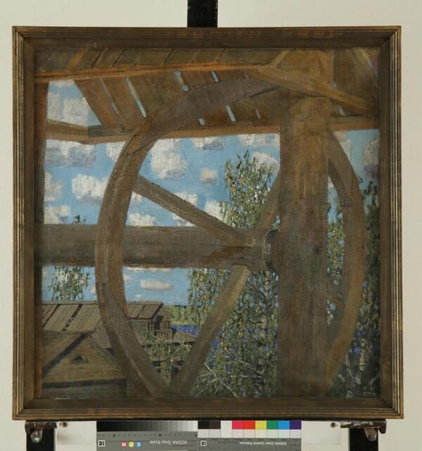 На фоне степного пейзажа у плетёной изгороди изображена группа фигур. Справа в ряд выстроены две гнедые лошади, одну из которых держит за уздцы молодой человек в форменной одежде. Слева изображена сцена прощания: мужчина в военной казачьей форме и женщина, изображённая со спины и держащая поднос со стременной — походной рюмкой. Ещё левее расположены пожилой мужчина и женщина: седобородый мужчина в казачьей форме опирается на палку, а женщина прикрывает лицо руками. За ними видна женщина с ребёнком. В левом переднем плане показана часть высокого крыльца. Колорит сдержанный, выполнен в тёмных охристо-коричневых тонах. Живописная фактура пастозная с явно выраженным движением мазка. В правом нижнем углу находится авторская подпись «сг07».