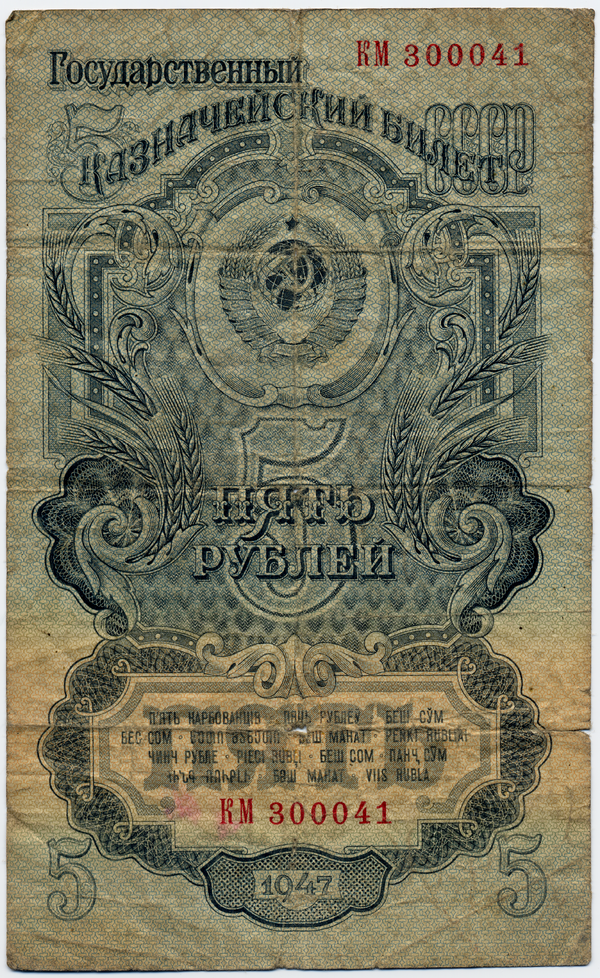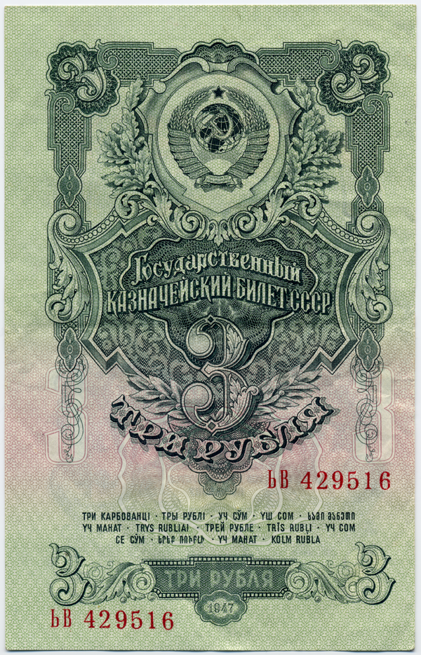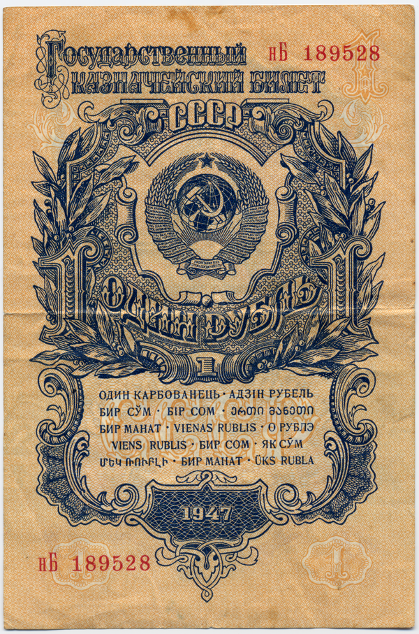 14 декабря 1947 года было принято постановление «О проведении денежной реформы и отмене карточек на продовольственные и промышленные товары» для ликвидации последствий войны. Постановление предусматривало замену ранее выпущенных денежных знаков новыми, а также их обмен в течение одной недели в соотношении 10 к 1. То есть один червонец (10 рублей) после обмена становился 1 рублём. Стоит отметить, что вклады населения до трех тысяч рублей пересчёту не подлежали, а вклады свыше трёх тысяч пересчитывались по льготному тарифу. Металлические деньги, выпущенные ранее, обмену не подлежали.