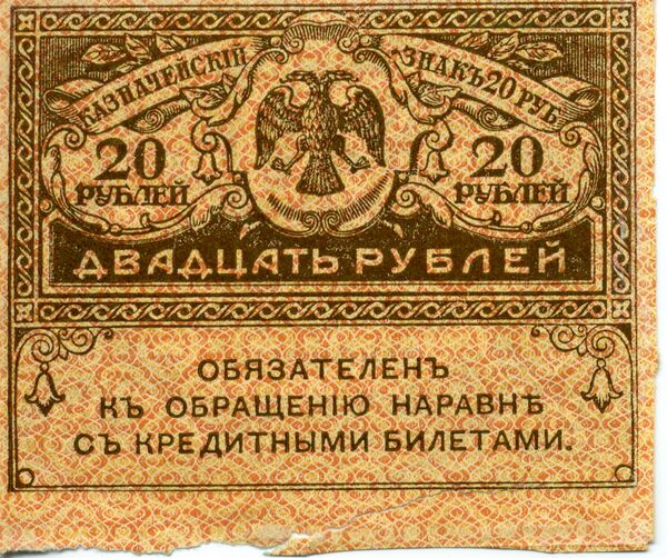 Указом от 23 августа 1917 года производится эмиссия государственных казначейских знаков достоинством 20 и 40 рублей, получивших в народе название «керенки».