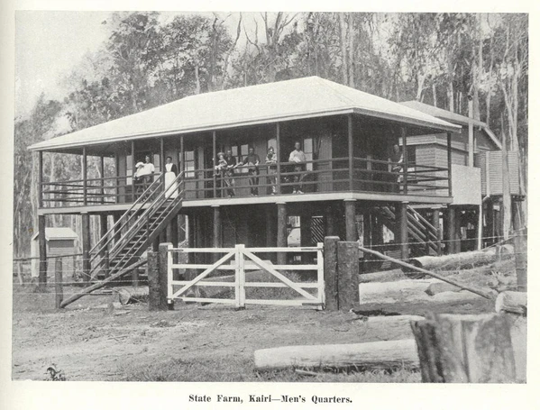 Правительство Квинсленда объявило о создании совхоза в Каири в мае 1911 года[5][6]. Пятьдесят акров земли были расчищены для ферм, которая первоначально была предназначена для рогатого скота и свиней[7]. Драммонд Макферсон был назначен на должность управляющего совхозом (ранее он был управляющим совхоза в Биггендене)[8]. К марту 1912 года в совхозе уже выращивали такие культуры, как кукуруза, коровий горох, родсова трава, тыква, сахарная дыня и огурцы[9]. Совхоз был закрыт в 1929 году.