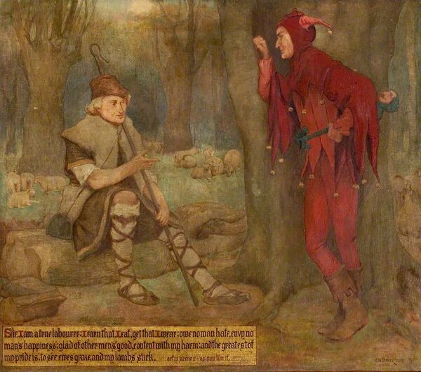 Розалинда, переодевшаяся юношей по имени Ганимед, Селия, назвавшаяся Алиеной, и шут Оселок прибывают в Арденнский лес, где встречают пастухов Корина и Сильвия. Корин жалуется путникам, что после отъезда хозяина имение, в котором он пасёт овец, пришло в упадок. Розалинда решает приобрести имение, а Корин обещает добросовестно вести хозяйство.