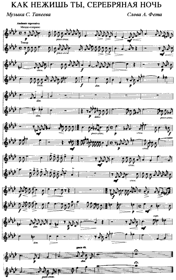 - Как нежишь ты, серебряная ночь. — партитура романса в Нотном архиве.