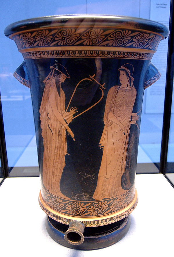 Калаф (др.-греч. κάλαθος, лат. calathus) — круглая плетёная корзина (τάλαρος), использовавшаяся древнегреческими женщинами на различных работах, для плодов, цветов, а также для хранения сыра, и особенно для хранения пряжи и шерсти и тому подобного, в форме цветка лилии. У римлян это был qualus, к которому восходит quasillaria — прядильщица[1][2]. Изготавливалась из различных материалов: глина, дерево, благородные металлы. Калаф играл большую роль в празднествах, посвященных богиням Афине и Деметре, и являлся символом цветочной корзины Персефоны. Калафом называлась священная плодовая корзина Деметры, которую возили в торжественной процессии в четвёртый день Элевсинских мистерий на священной колеснице при кликах народа: Χαῖρε Δήμητερ[1]. Благодаря празднествам получили своё название древнегреческий керамический сосуд схожей формы для вина и других жидкостей и основание коринфской капители в виде плетёной корзины из листьев аканфа, а также головной убор Гекаты, Артемиды Эфесской, Сераписа — символ плодородия[3].