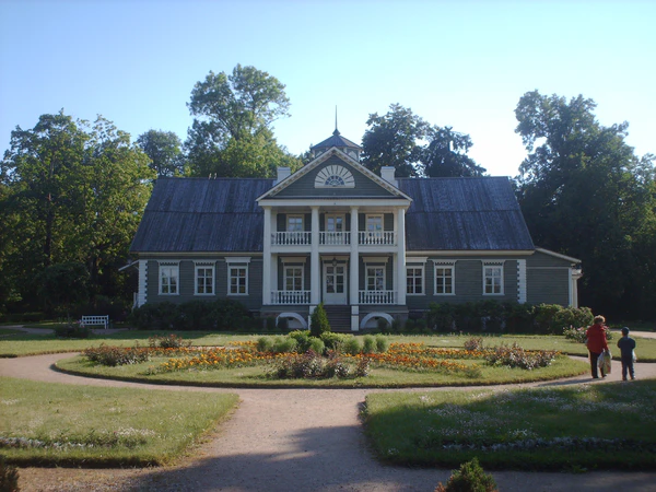Пушкин приехал в Михайловское 9 (21) августа 1824 года из Одессы. Это было его третье посещение псковского имения. Перед этим полицией в Москве было вскрыто одно из его писем, где он писал об увлечении «атеистическими учениями». Это послужило причиной отставки поэта 8 (20) июля 1824 года от службы с указанием проживать в имении матери в Михайловском[18]. По прибытии в имение поэт застал в полном составе свою семью. Его поселили в комнате возле крыльца, с окнами, выходящими во двор. Вход в комнату был прямо из коридора, а напротив его двери находилась комната няни Арины Родионовны, в которой стояло множество пяльцев и работали крепостные девушки[19].