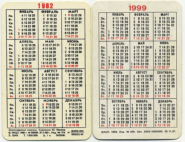 - Одним из массовых производителей карманных календариков в СССР был Ленинградский комбинат цветной печати (ЛКЦП, проспект Обуховской Обороны, 110), до 1970-х годов называвшийся 3-й Ленинградской фабрикой офсетной печати Главполиграфпрома.