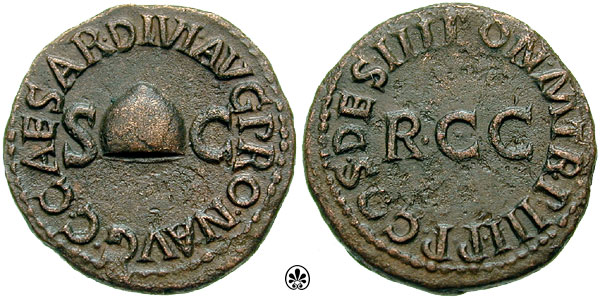 После убийства Калигулы новый император Клавдий приказал переплавить бронзовые монеты, отчеканенные предшественником. Из свидетельства Стация можно предположить, что по крайней мере часть выпуска монет времён Калигулы оставалась в обращении. Тем не менее, монеты, отчеканенные при Калигуле, весьма редки в большинстве сохранившихся кладов. На мелких монетах Калигулы нередко ставили клеймо с инициалами Клавдия (TICA — Tiberius Claudius Augustus), которым забивались инициалы Калигулы, на других поверх профиля Калигулы выбивался портрет Клавдия, на третьих сбивались инициалы Калигулы, а на четвёртых портрет этого императора намеренно портился[179].