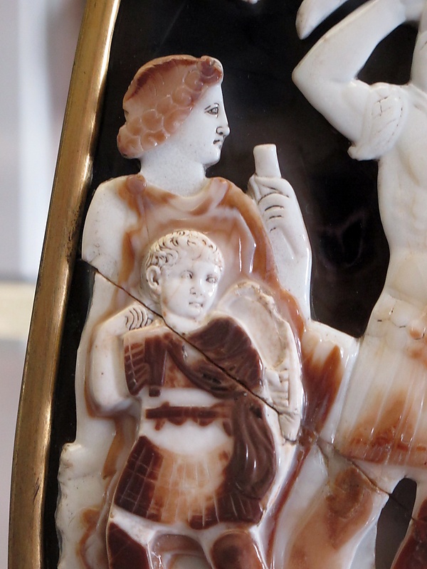 После смерти Октавиана (19 августа 14 года) в легионах на Рейне вспыхнул мятеж, во время которого Агриппину с ребёнком, по разным версиям, взяли в заложники или вынудили бежать из лагеря[9]. После подавления мятежа Германик повёл наступление на правом берегу Рейна, оказавшееся довольно успешным, несмотря на отдельные неудачи. Однако развить успех он не успел, поскольку в 17 году полководец вместе с семьёй по настоянию Тиберия вернулся в Рим для празднования триумфа, который состоялся 26 мая[10][11].