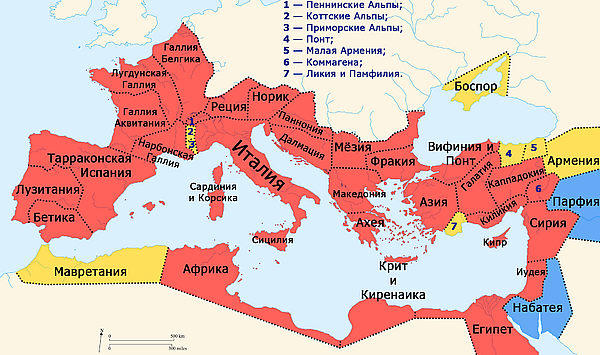 Свидетельства источников о деятельности Калигулы по руководству провинциями и зависимыми государствами представлены негативными отзывами Иосифа Флавия, Сенеки и Филона о плохом состоянии провинций после смерти императора. При этом данные Сенеки, полагает Джон Болсдон, крайне предвзяты из-за стремления автора угодить новому императору Клавдию, а информация Иосифа Флавия и Филона относится лишь к Иудее и части Египта — Александрии[204]. Критическое отношение к источникам по этому вопросу разделяется не всеми исследователями. В результате оценки провинциальной политики Калигулы варьируются от отрицательных, акцентирующих внимание на непоследовательности и неудачах императора[205], до положительных, признающих его компетентность в руководстве империей[206]. Серьёзным отличием Калигулы от предшественников стало открытие сословия всадников для провинциалов. Впоследствии политика вовлечения провинциальных элит в римское общество продолжилась[107].