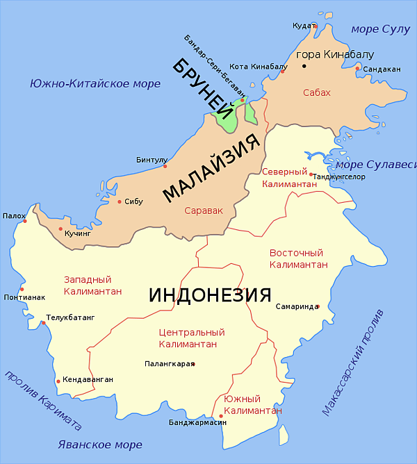 Часть Калимантана, принадлежащая Малайзии, разделена на 2 штата: