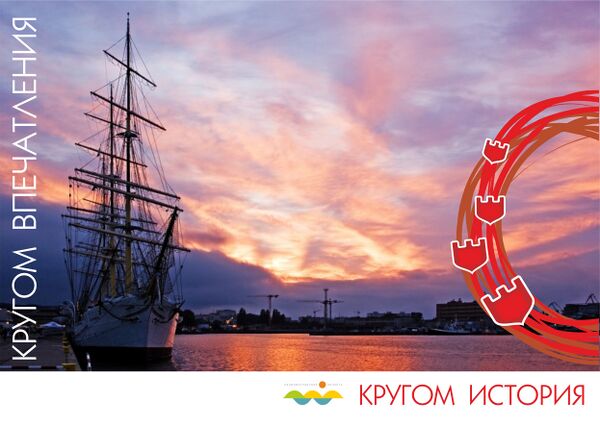 Туристические плакаты Министерства экономики Калининградской области с сегментированием общего штампа „Кругом впечатления“ туристического бренда Калининградской области: