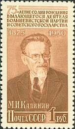 Михаи́л Ива́нович Кали́нин (7 [19] ноября 1875, Верхняя Троица, Тверская губерния, Российская империя — 3 июня 1946, Москва, СССР) — российский революционный, советский государственный и партийный деятель. С 1919 по 1946 год занимал должность номинального главы государства в РСФСР, а затем и СССР (в разные годы именовалась по-разному: с 1919 года председатель ВЦИК, с 1922 года председатель ЦИК СССР, с 1938 по 1946 год председатель Президиума Верховного Совета СССР).