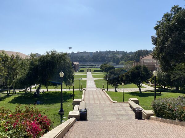 Кампус университета занимает 1.7 квадратных километров в районе Вествуд, у южного подножия хребта Санта-Моники. В университете находятся 163 здания в различных архитектурных стилях. На территории кампуса находится большое количество площадей, полян, тропинок, парковок, аллей, дорог, общежитий, скверов, учебных заведений, кафе, ресторанов, и торговых автоматов с напитками и едой.
